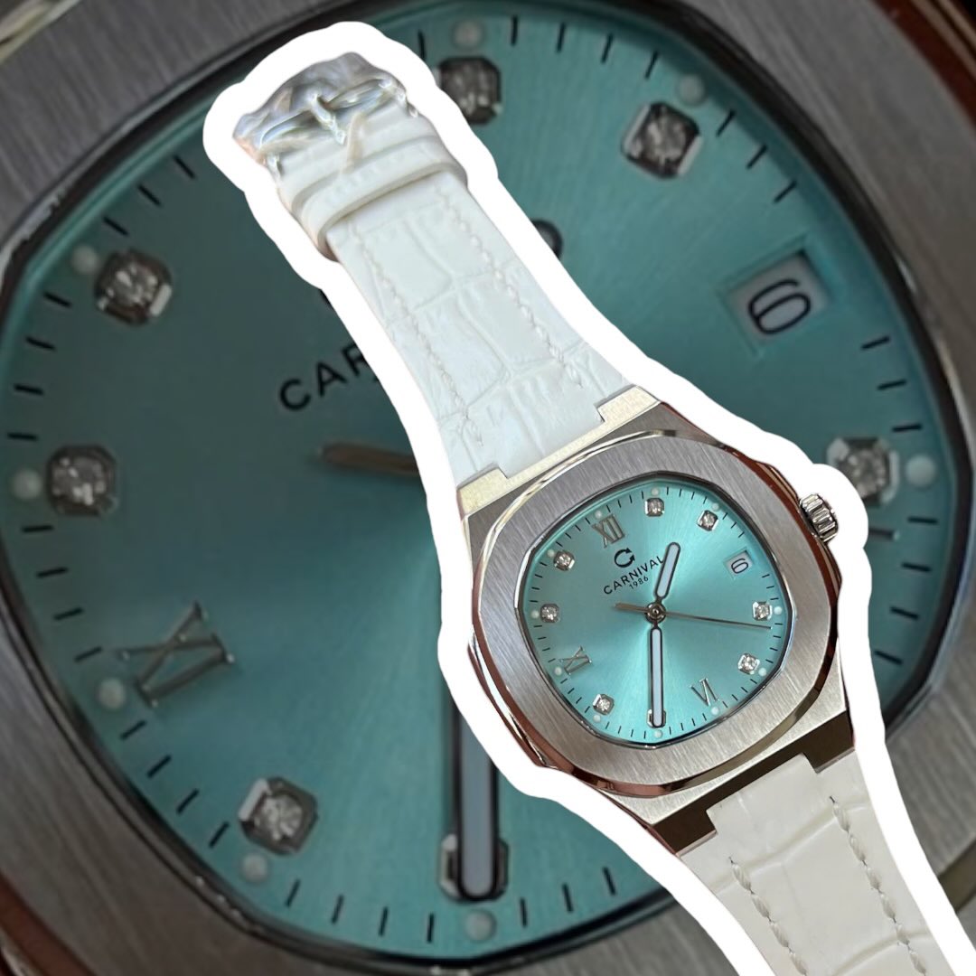 CARNIVAL 8160L DIAMOND SILVER TIFFANY FACE DÂY DA TRẮNG