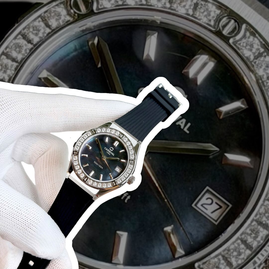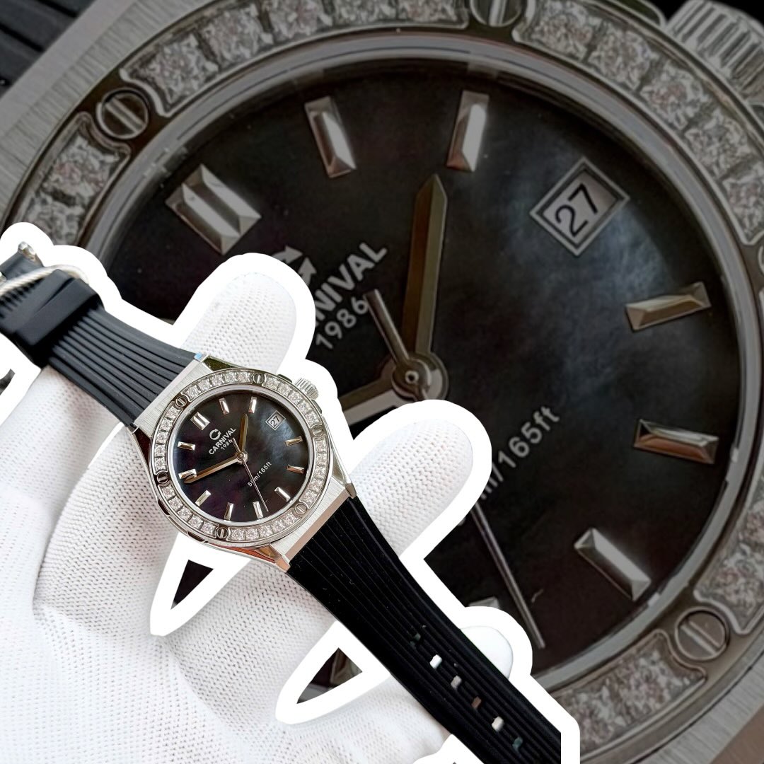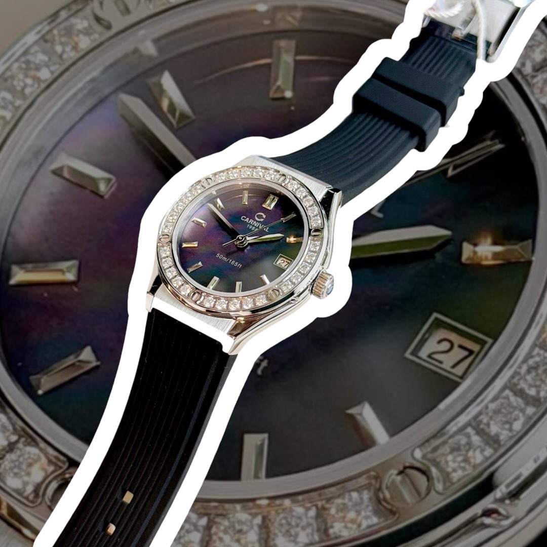 CARNIVAL 8168L2 SILVER DIAMOND MOP BLACK FACE DÂY CAO SU