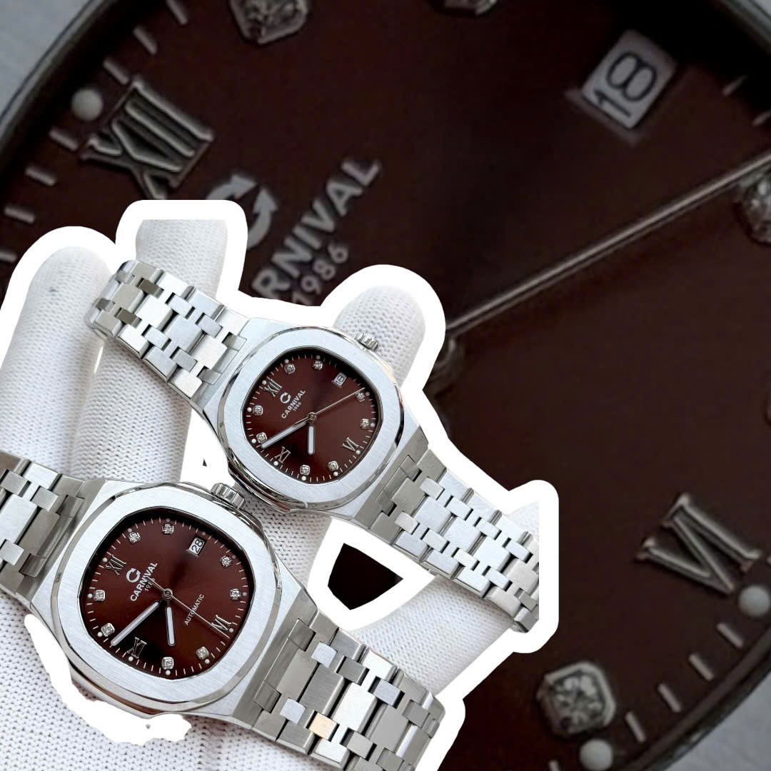 ĐỒNG HỒ COUPLE CARNIVAL 8160 SILVER BROWN CHOCOLATE FACE